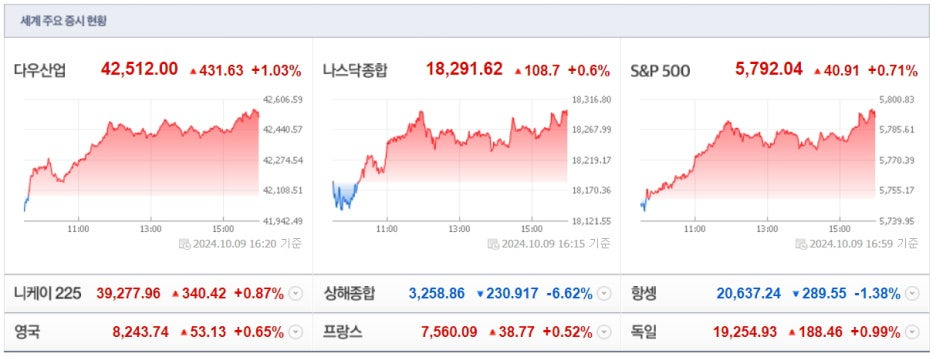 오늘 미국 증시 요약: 2024년10월9일(수)