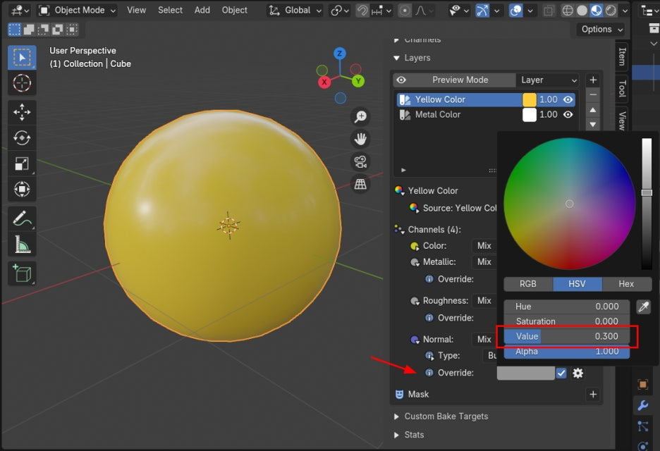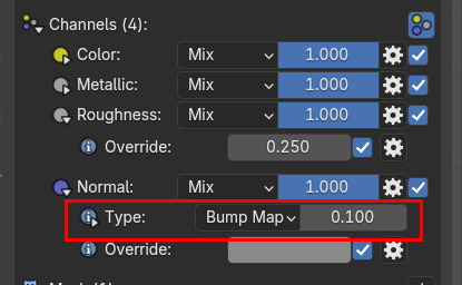 그리고, Normal 을 활성화 하고, Override 를 0.3으로 합니다.