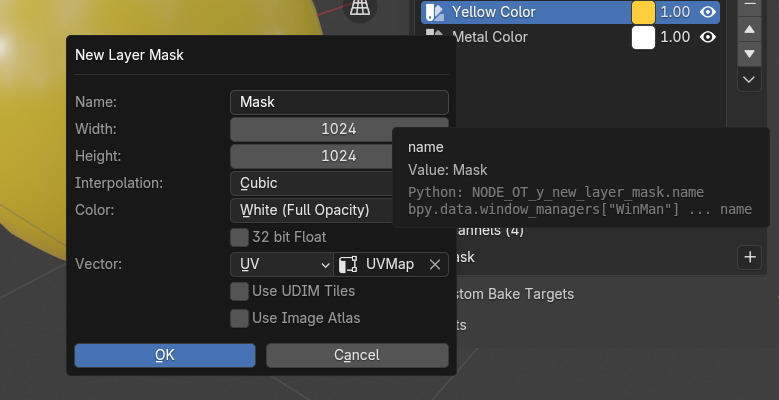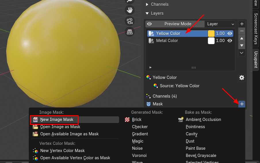 자, 이제 Yellow Color를 (반드시)선택하고, Channels아래의 Mask를 추가, New Image Mask 를 선택 생성 하고,