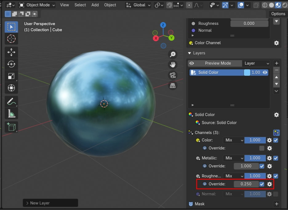 Roughness 값을 더 내려주고, 0.25