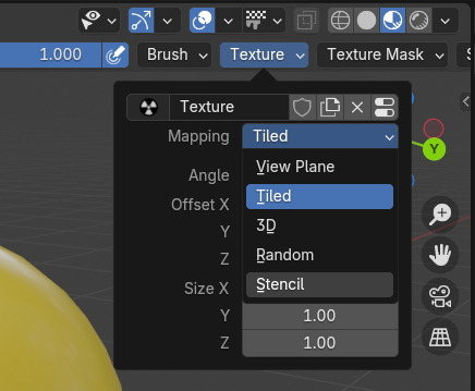 3D viewport 상단 메뉴에 Texture, Texture Mask 메뉴가 있습니다. Stencil을 사용해 보겠습니다.