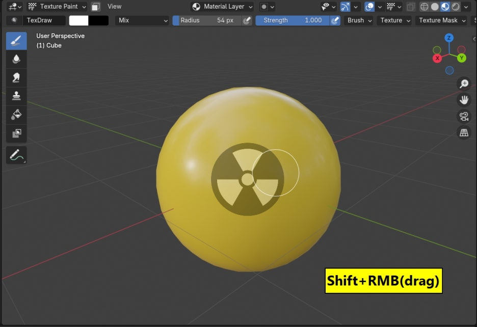 원하는 위치에 크기와 회전값이 확정되었으면, Draw브러시로 드래그 합니다. 슥슥