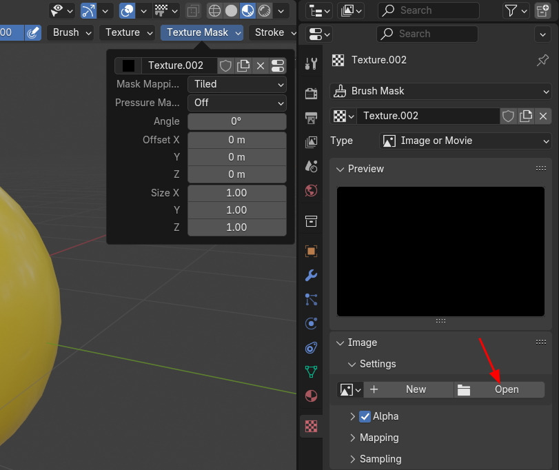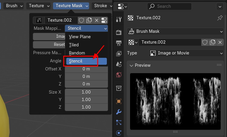 3D viewport 상단 메뉴에 Texture, Texture Mask 메뉴가 있습니다. Stencil을 사용해 보겠습니다.