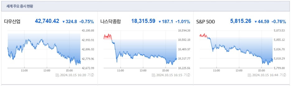 오늘 미국 증시 요약: 2024년10월15일(화)
