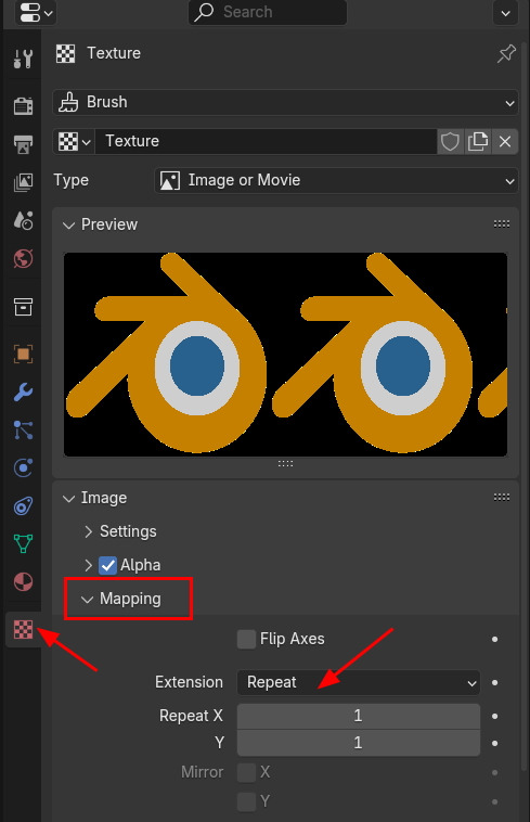 Brush에 Texture를 부르면, 기본 값이 Mapping에 Reapet 로 세팅됩니다. 무한 반복입니다.