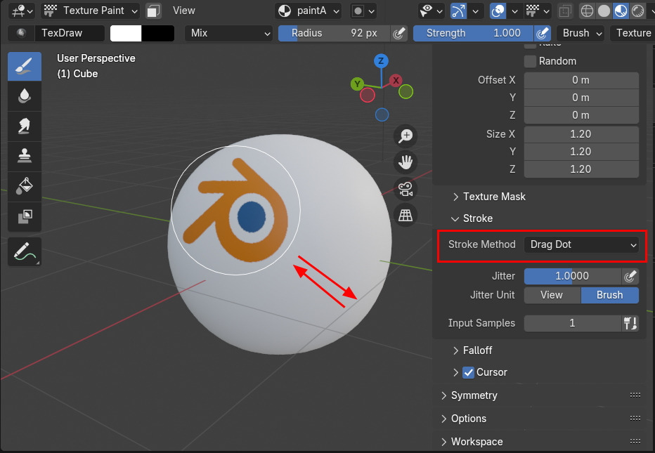 기본 값은 Space입니다. Draw 브러시로 드래그를 합니다.