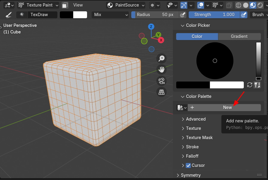 컬러 팔레트는 만들어 주는 것이 좋습니다. Color Palette에서 New버튼을 클릭하면 팔레트가 만들어집니다.