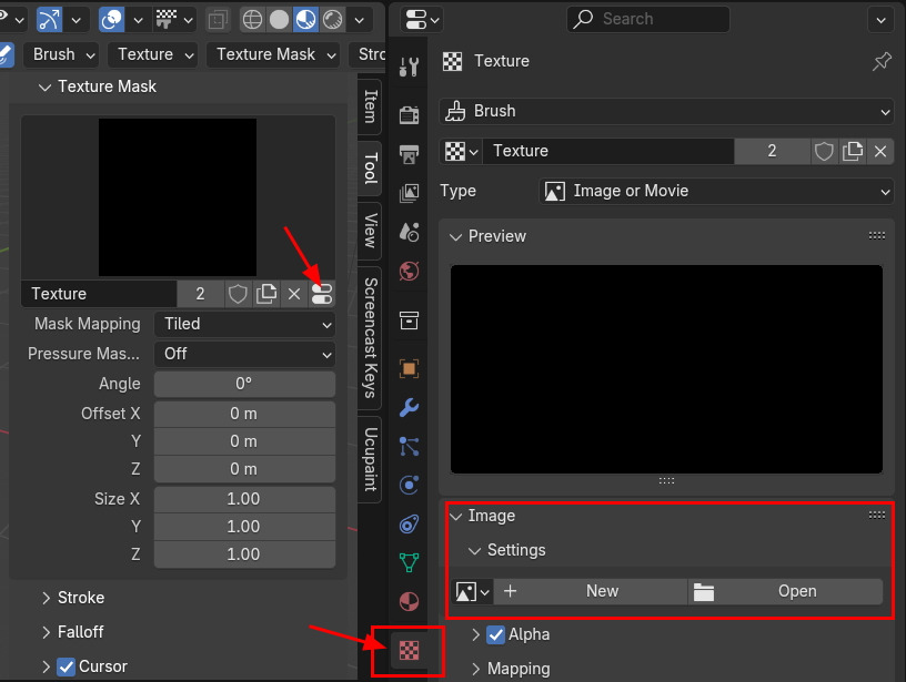 이번은 Blender의 Texture Paint 에서 Brush에 Alpha Mask를 이용하는 방법에 대한 것입니다.