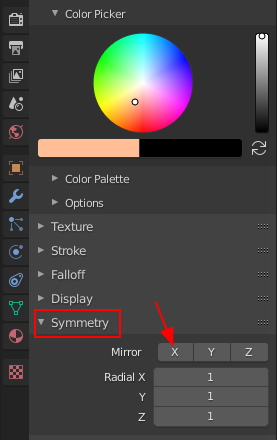 하단에 내려가면 Symmetry, 즉 대칭적 Brush작업을 할 수 있습니다.