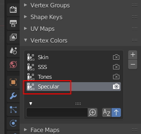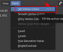 Object data Properties, Vertex Color메뉴에서