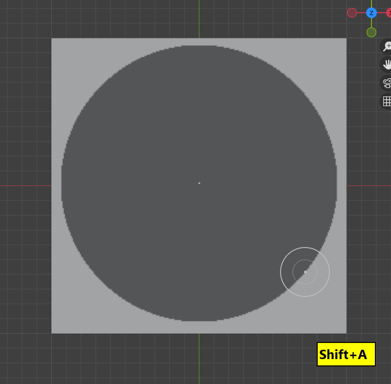 Brush는 정사각형 Plan에서 만듭니다. 그리고, 정원의 영역으로 Brush Texture 모양이 되도록, 정원 안에 만들어 넣습니다. 마스크를 만듭니다. (원형의 마스크는 Shift + A )