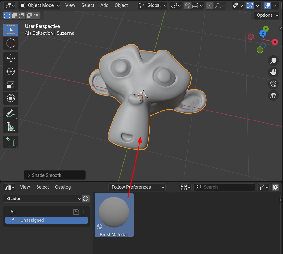 오브젝트의 Shade Editor에 적용된 Shade Material을 확인할 수 있습니다.
