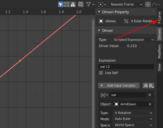 오른쪽 탭에 F-Curve로 전환합니다.