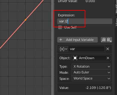 ArmDown으로 부터 들어오는 변수(회전값)를 1/2 하겠다는 말이죠.