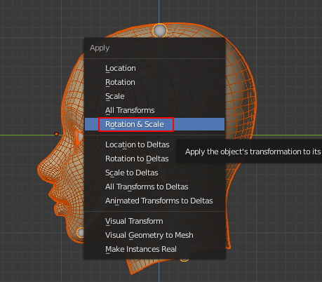 Ctrl + A , 아래의 메뉴들이 나오고, Rotation & Scale을 적용합니다.