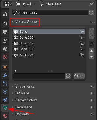 Data properties의 Vertex Group에서 확인해 볼수 있습니다.
