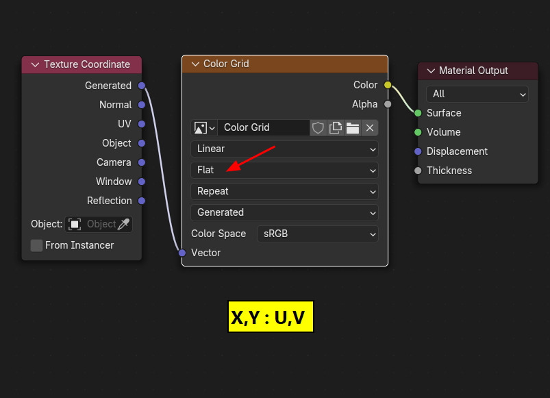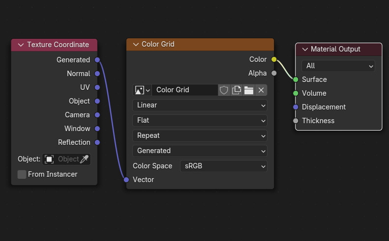 여기에 Image Texture 노드를 넣어 봅니다. Color Grid를 만들었습니다.