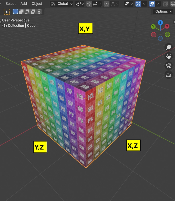 그러면, XYZ을 다 적용된 상태입니다. XY, XZ, YZ 이렇게 적용됩니다.