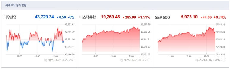 2024년11월7일(목) 미국증시 마감요약