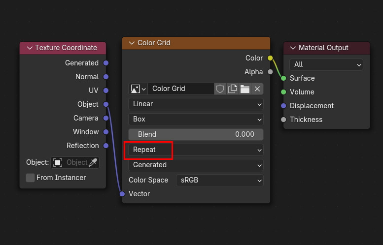 Image Texture의 속성중에 Repeat가 기본값이기에,