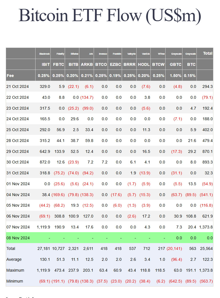 블랙록이 무려 1,119.9밀리언 달러 (약 1조 5천억원)를 11월 7일 단 하루(!)에 투입하였습니다!!!