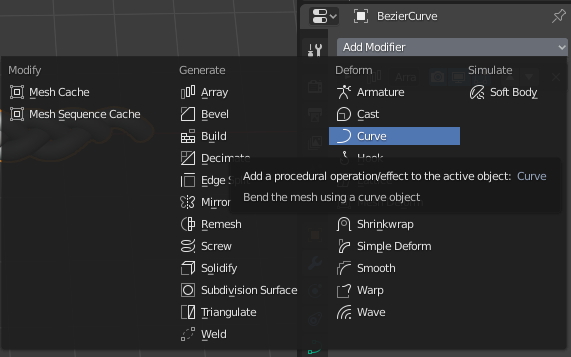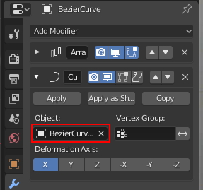 Curve Modify 옵션에 Object 를 Curve를 선택합니다.