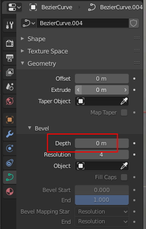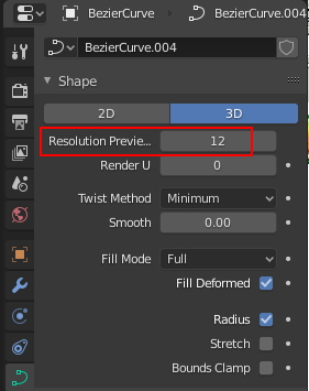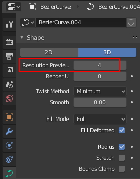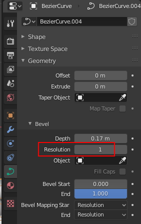 그리고 Curve / Geometry / Bevel / Resolution의 수치도 내립니다.