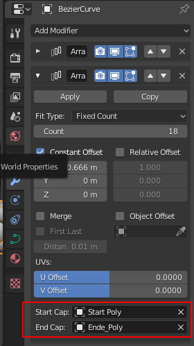 Modify / Curve의 하단에 보면 Start cap, End cap에 Object를 부를수 있습니다.