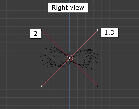 그리고, Right view로 이동해서 왼쪽 첫번째, 세번째 Vertex handle을 아래와 같이, 중간, 두번째 버텍스 핸들을 아래와 같이 Rotate합니다. 8자 모양이군요.