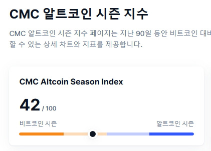 김프가는 0.%대 이고,도미넌스는 60%대를 오고가고 있습니다. 알트시즌은 살짝 오른 42입니다.