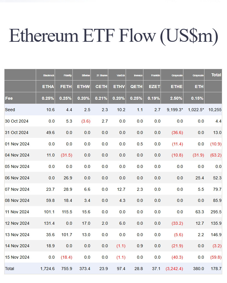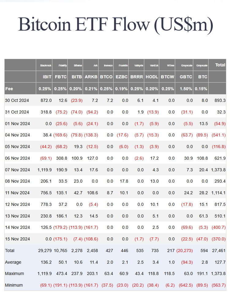 주말동안에 수정이 있었네요. 15일 블랙록의 유입액이 0으로 변했습니다.