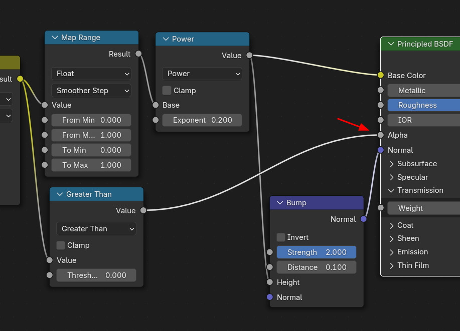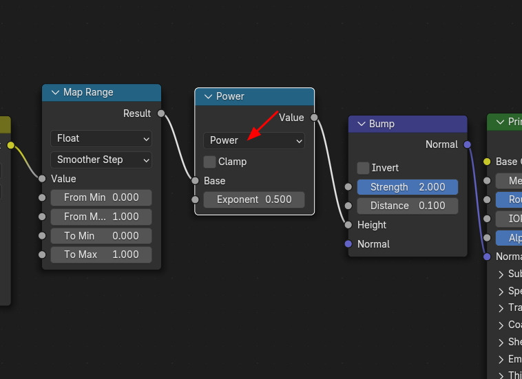 이 결과를 Bump에 연결하여 Pricipled BSDF에 연결합니다.