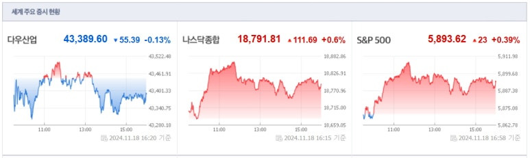 2024년11월18일(월) 미국증시 마감요약