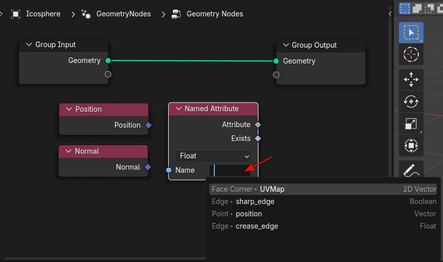 이것을 Name Attribute의 Name에서 Sharp_edge를 불러서 연결해도, 같은 결과를 낼수 있습니다.