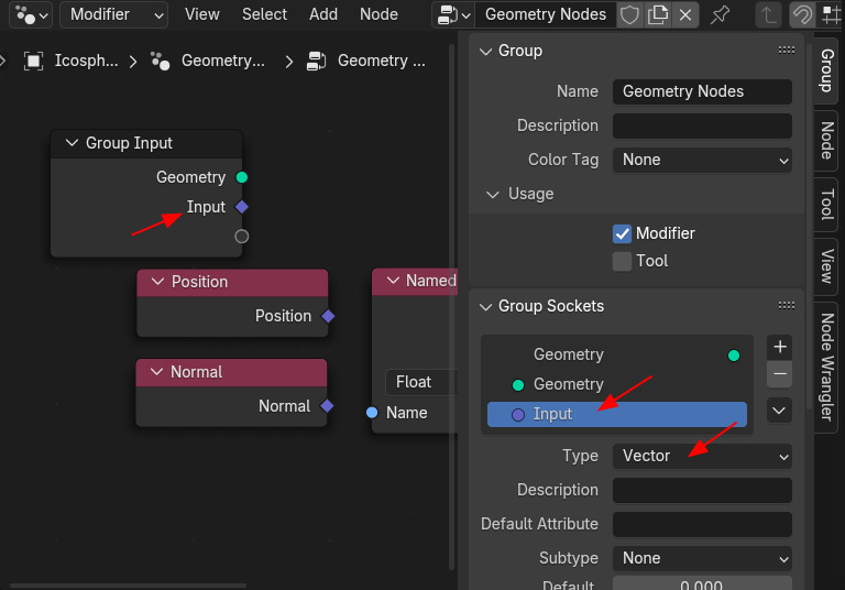 그러면, Group Sockets 에 Socket 이 추가되고, Group Node Input 나타납니다.