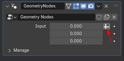 그러면, Modifier에 Input과 3개의 칸이 등장합니다. 그리고 오른쪽에 스프레드시트 아이콘이 보입니다. 그것을 클릭하면,