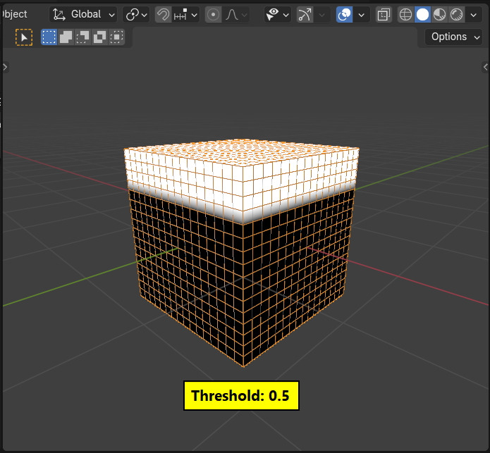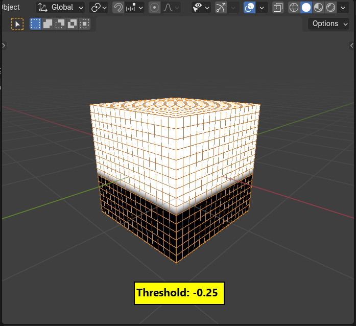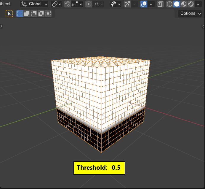 Position 의 Z축, -1에서 1까지 인데, Threshold 0을 기준으로 화이트와 블랙으로 나눠져 보입니다.