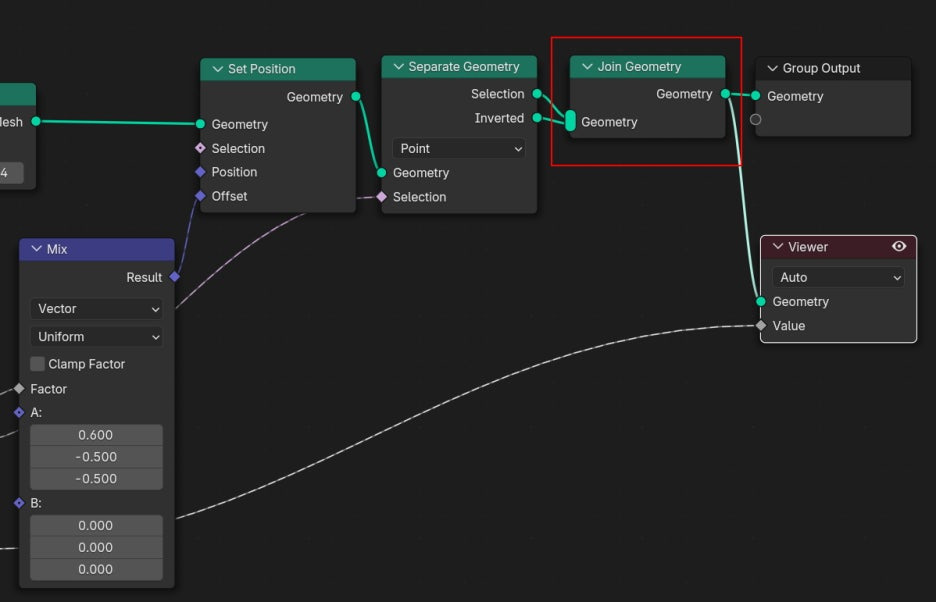 Separate Geometry 의 Selection에서 Inverted로 소켓을 이동하면,