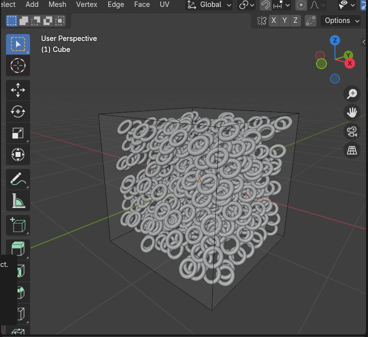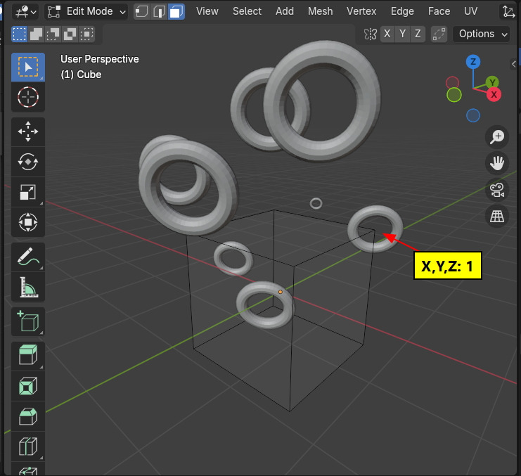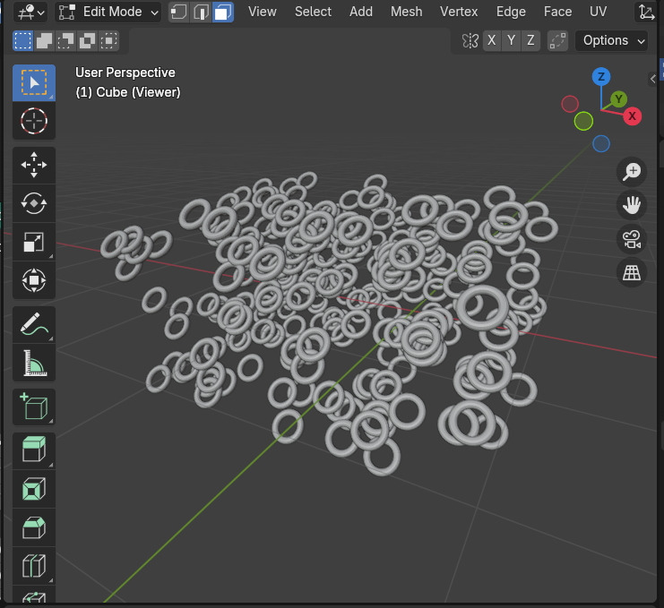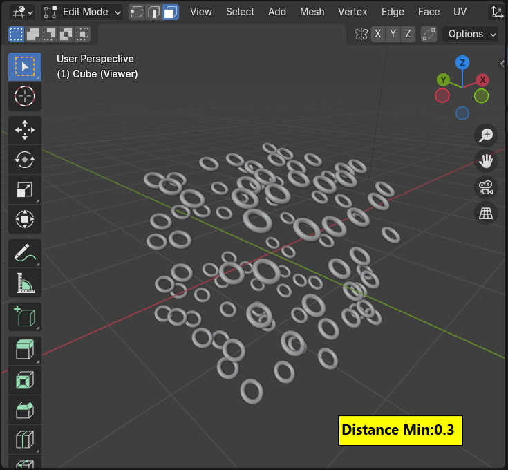 Torust가 Mesh의 표면에 분산 배치됩니다.