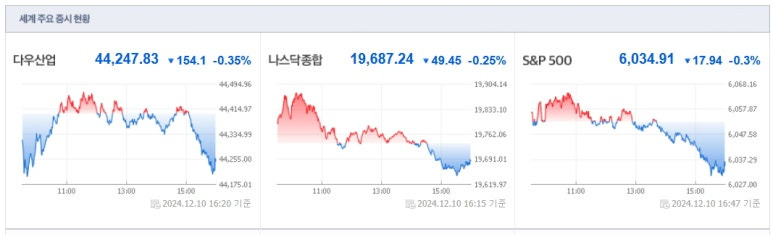 2024년 12월10일(화) 미국증시 마감요약