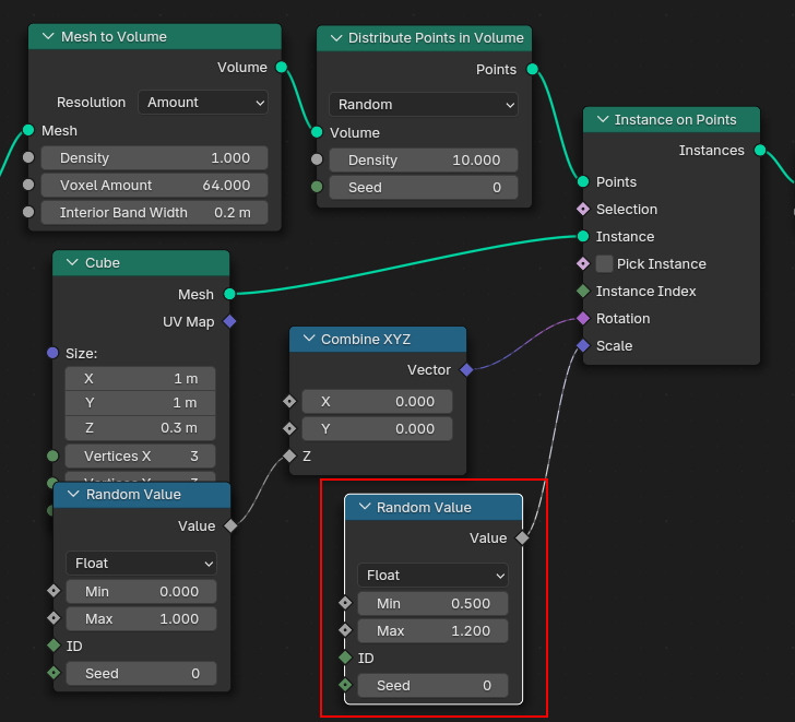 이 Points에 메쉬 Instance 를 받습니다. 메쉬는 Cube로 받습니다.