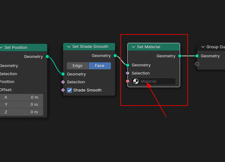 Material을 적용하기 위해서 Set Material을 적용합니다. Material을 만들어서 여기에서 선택합니다.