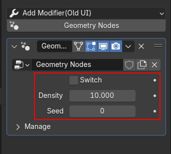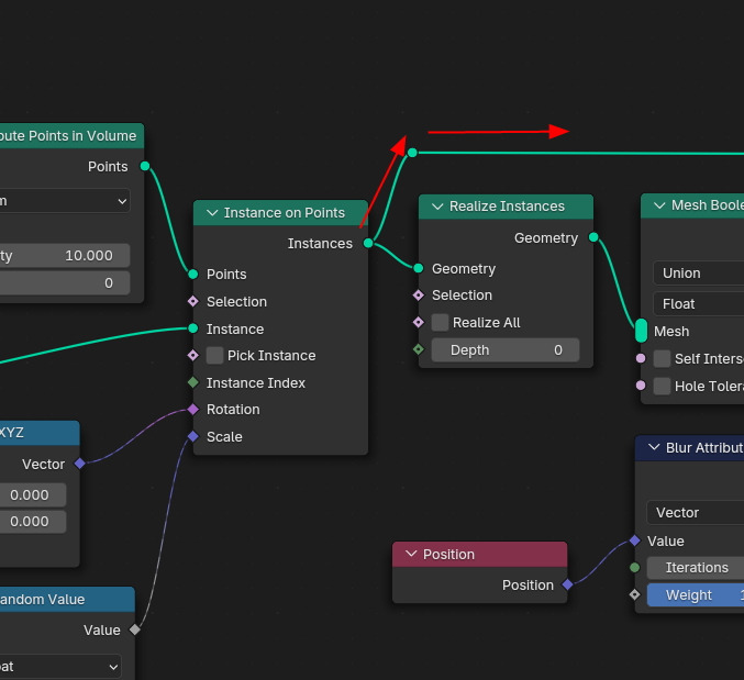 추가로, Distribute Points in Volume의 Density값과 Seed를 입력할 수 있도록 연결합니다.