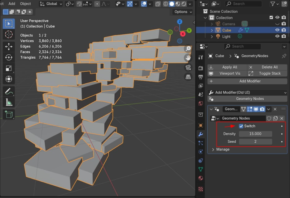 Switch가 On일때, Cube들이 보이고, Off일때, 결과물이 보입니다.