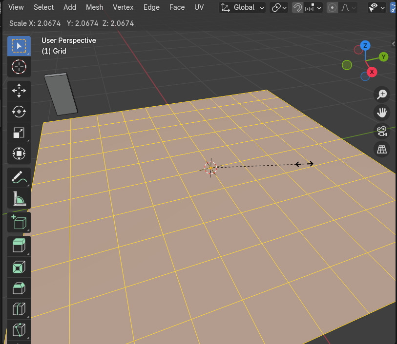 앞뒤 간격도 너무 넓으니, 에디트 모드에서 X축으로 크기를 줄입니다.