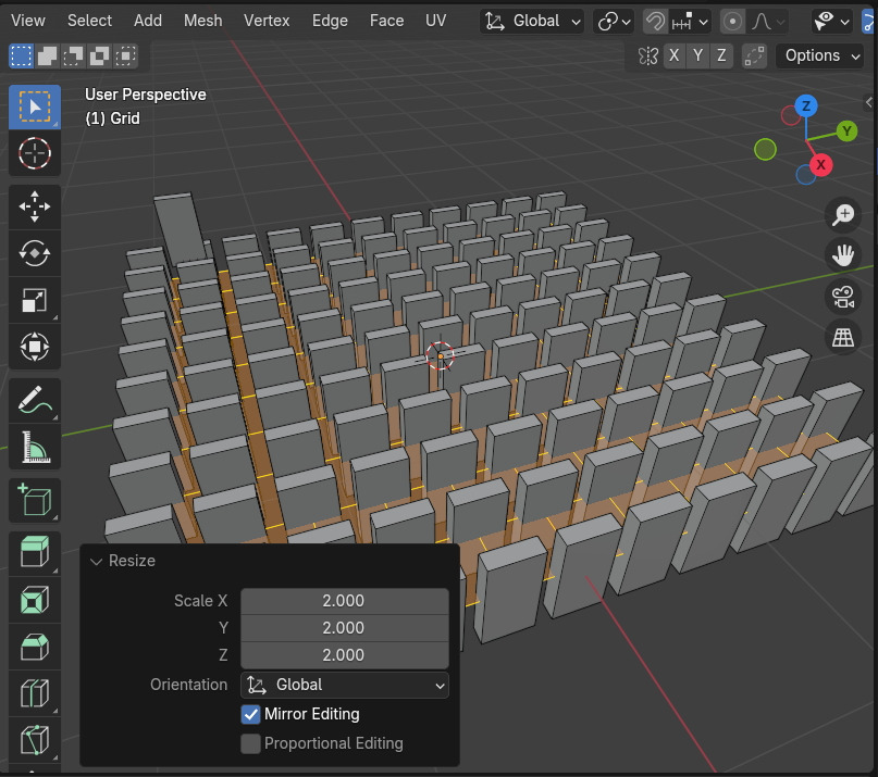 Edit mode에서 Grid 전면을 복사해서 X축으로 이동합니다.