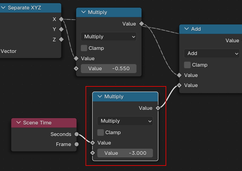 현재 진행되는 시간에 애니메이션 속도를 조절하기 위해서는 Math의 Multiply를 사용합니다.