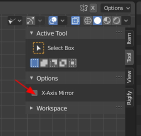 그리고 Tool의 X-Axis Mirror를 켜줍니다.