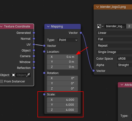Mapping에서 Location의 위치를 변경하거나, Scale을 조절해서...