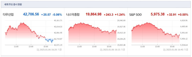 2025년1월6일(월) 미국증시 마감요약
